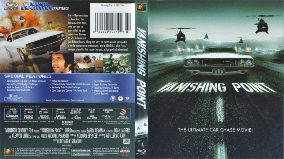 The Ending: Few understand the ending in the original Vanishing Point, but there is one. The dramatic final scene in which Kowalski vaporizes the Challenger and himself into the two bulldozer blades was not because he had given up on life. In the original Vanishing Point, Kowalski is smiling prior to his demise as he didn't get caught. He's a free spirit (typical 60/s70s hippie vibes), a risk taker, a loner, enjoys recreational "drugs" and is anti government. A free spirit doesn't like to be caged (jail). He's smiling because once he hits the bulldozers it's all over... he's "free", "he won". The ultimate freedom.